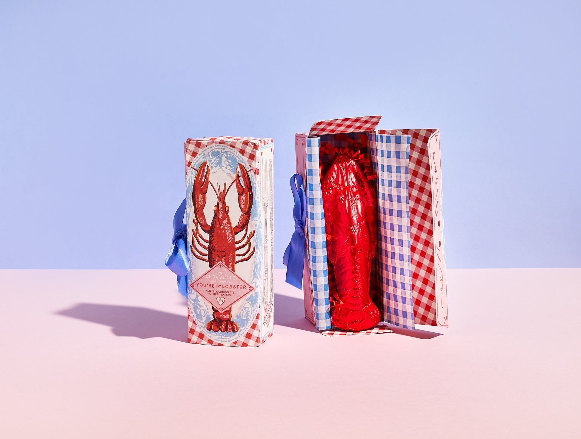 Our hollow milk chocolate lobsters are the symbol of devotion, loyalty, and the firm-standing belief in true love. Each lobster is delicately hand wrapped in red foil, presented in our oh-so memorable boxes and tied with ribbon. This beautiful box is made to be treasured (but it’s 100% recyclable too!)